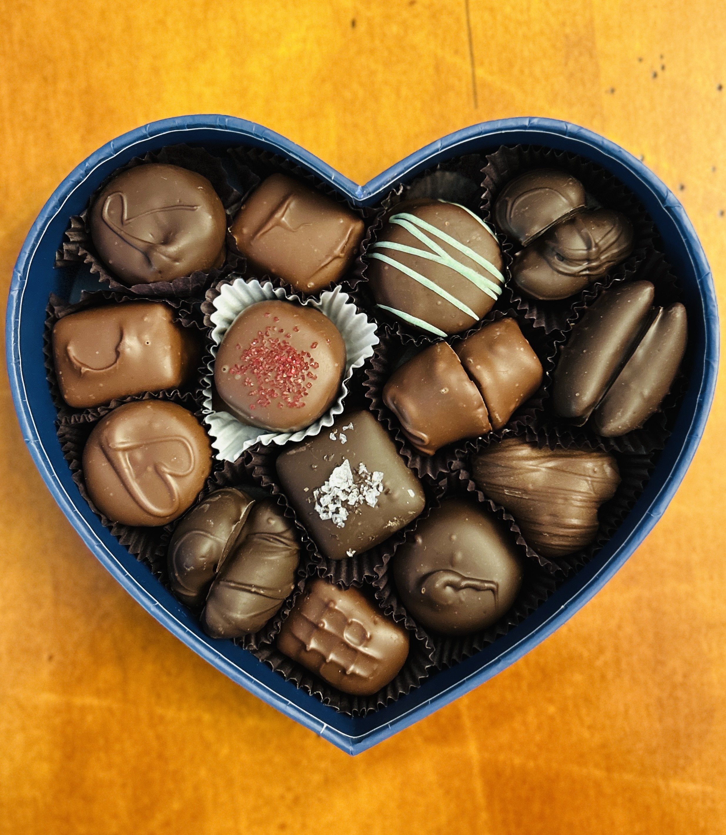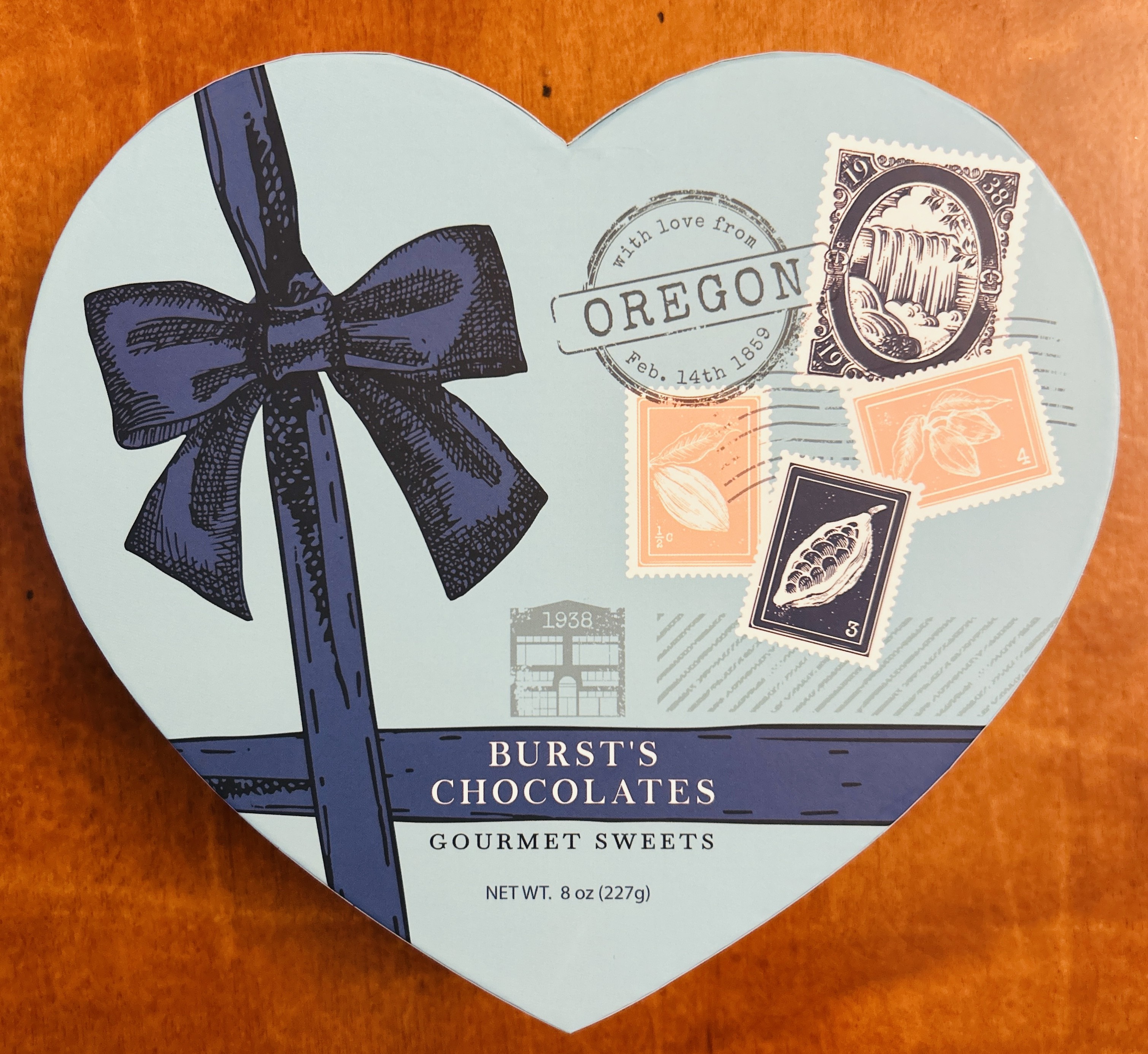 This heart box makes a thoughtful gift for any occasion, especially when wanting to share a piece of Oregon with others. Offering a curated selection of Burst’s best chocolates—deluxe nuts, nougats, fruit creams, and more—each box is crafted to delight the senses and leave a lasting impression. 1/2lb
